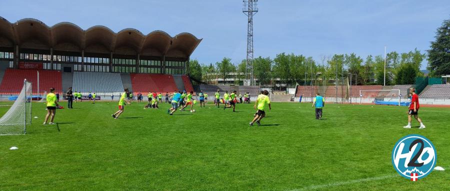 Le matin, les 130 sportifs et sportives s’attelaient à des ateliers ludiques : cibles gonflables, tirs au but, dribbles… les équipes se sont ensuite rencontrées sur le terrain.