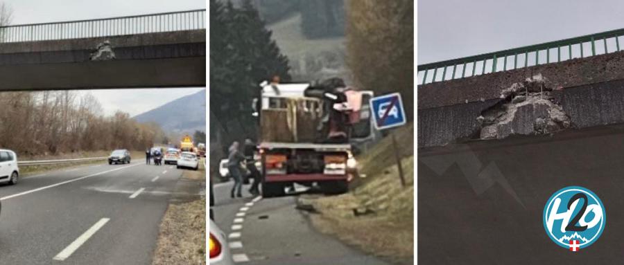Un camion équipé d’une petite grue de manutention a percuté un pont de la voie des Aravis (RD916) ce mercredi 22 février 2023 peu avant 16 heures.
