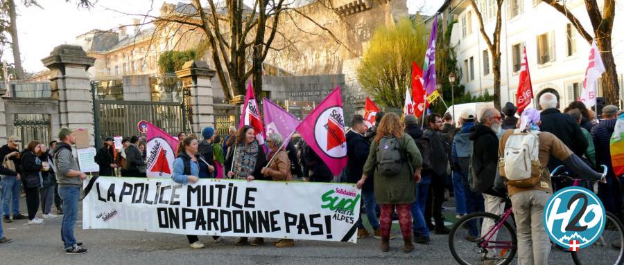 Se rassembler à 19 heures devant toutes les préfectures de France pour demander la fin des violences policières. L’appel lancé par le mouvement des “Soulèvements de la Terre” ce jeudi 30 mars était clair. Et les manifestants chambériens l’ont entendu. Ils étaient 300 à se réunir devant la préfecture de la Savoie à 19 heures. Après une courte série de prises de parole, le groupe a défilé dans les rues de Chambéry en passant notamment par la place des Éléphants. La marche a gonflé à ce moment-là. “Nous étions plus de 1 000 à marcher ensemble”, assure Thierry Bonnamour de la Confédération Paysanne. “L’objectif de cette mobilisation c’est de sensibiliser l’opinion et de faire un zoom sur les violences policières qui sont illégales. Il y a une violence qui peut être légale, mais les violences policières qui ont eu lieu ces derniers temps sont des violences illégales. Quand un policier sort du cadre dans lequel il doit œuvrer, ces violences sont illégales. Et même si certaines violences puissent être légales, sont-elles légitimes à chaque fois ?”, interroge-t-il. “La police est au service du peuple et ne doit pas la martyriser”, souhaite-t-il rappeler.