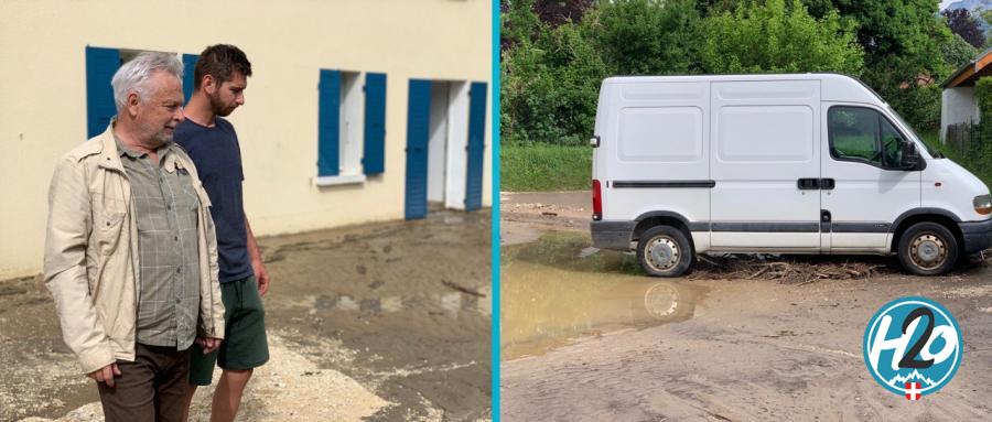 Le Nant des Charmières qui passe derrière la résidence a débordé, charriant toute sorte de matériaux depuis le Col de Bluffy